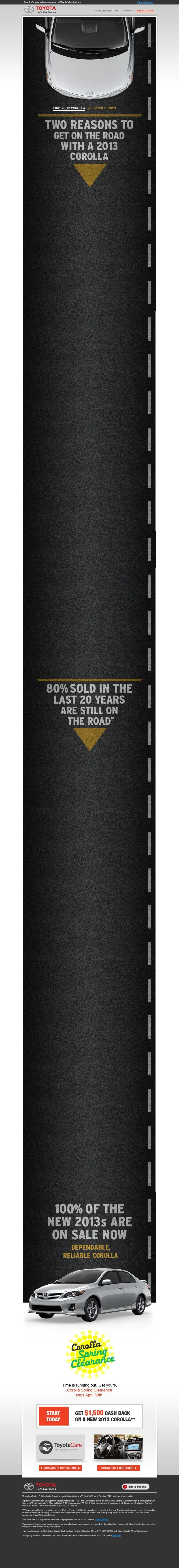 When tasked with creating an email speaking to the durability of the Toyota Corolla, we answered with a long, long, long, interactive email.